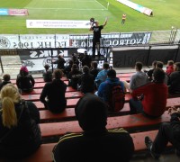 Kvůli nucené absenci Májose si bere megafon na starost mladej Káča, který se slušně osvědčil, projel téměř celý repertoár votroků, akorát ještě nemá v kotli takový respekt jako právě Májos. Velkou roli zde hraje i věk. Většina v kotli se zapojuje do fandění, chvílemi je to na kvalitní úrovní, místy to pokulhává. Myslím, že s tím, co měl k dispozici, tak odvedl slušnou práci. Po závěrečném hvizdu jsou odpáleny červené stroboskopy.