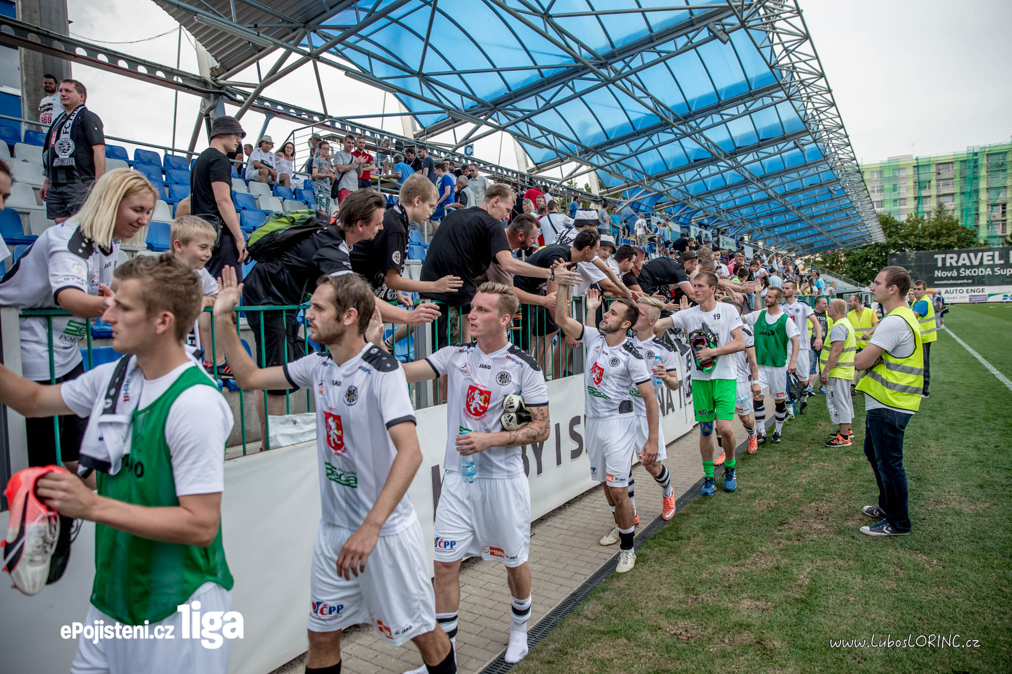 V sektoru hostí byli vyvěšeny asi tři vlajky a pár fanoušků z Jihlavy, na tu dálku bohužel nemůžeme napsat přesný počet. Nutno říct, že jihlavští fandili i v malém počtu a ostudu určitě neudělali.