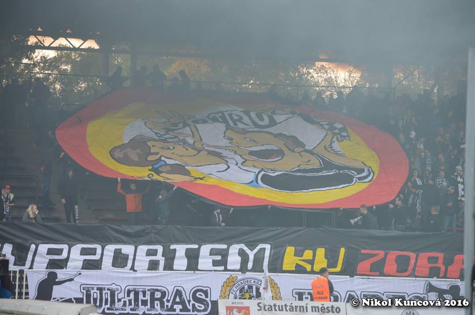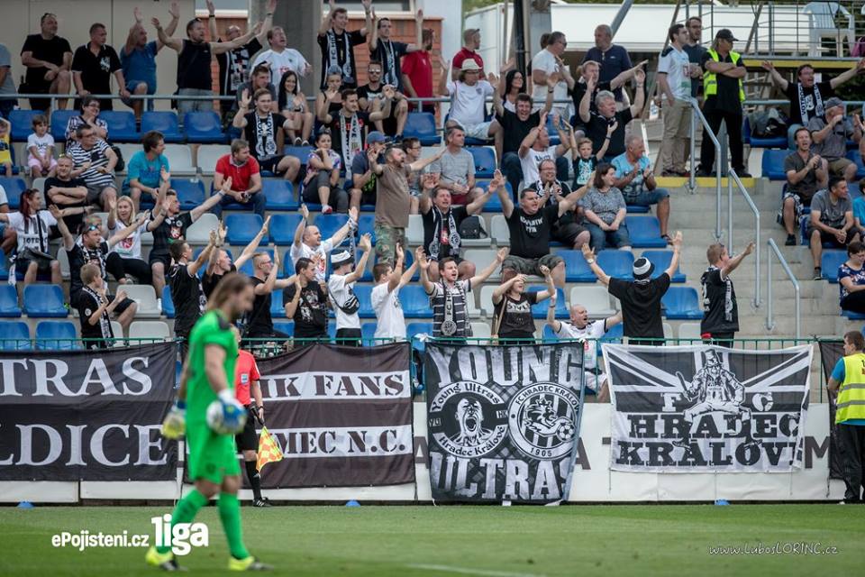 Po návratu domů do Hradce Králové nás hned na rozjezd čekal ostrý zápas se Slavií, který se nám podařilo vyprodat, kotel byl slušně zaplněn a zápas měl snad vše, co potřeboval. Z naší strany nechyběly dvě povedené choreografie, z nichž byla druhá doplněna o pár kusů pyrotechniky.