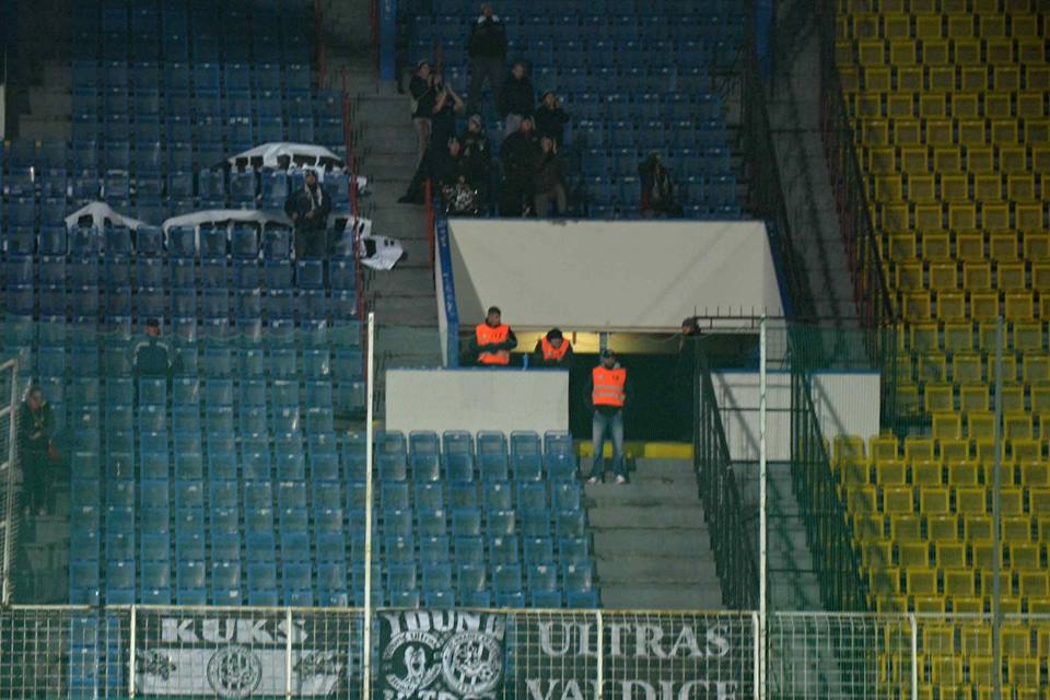Nechtěli jsme tedy dělat problémy a tzv. kotel jsme si vytvořili na kraji podélné tribuny, ovšem už během pár minut zápasu s Jabloncem zjišťujeme, že jsme monitorováni policií a mezi námi je hned několik osob z kriminálky. Tuto buzeraci si Ultras jádro nenechalo líbit a na ostatních zápasech už se neobjevilo.