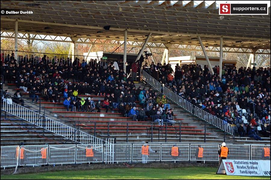 Po podzimní části můžeme být s naší návštěvností spokojeni. Nejprve jsme museli z důvodu rekonstrukce východní tribuny na Malšovickém stadionu nuceně sehrát první čtyři domácí zápasy v azylovém prostředí na Městském stadionu v Mladé Boleslavi. Město automobilů je od Hradce Králové vzdáleno 80 km, což byl pro hradeckého fanouška jistý handicap, ale o propadák se nejednalo. V průměru si v Mladé Boleslavi našlo cestu 1402 fanoušků/zápas.