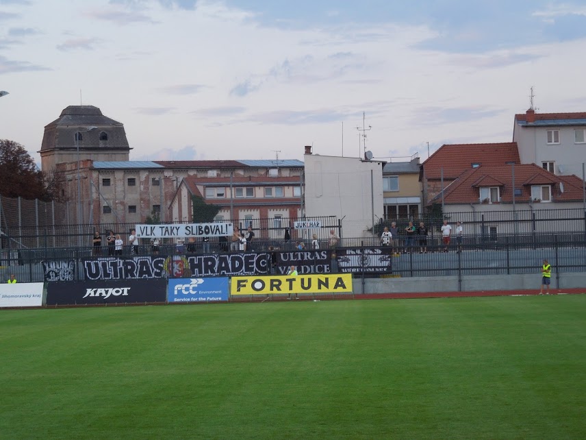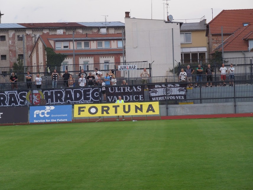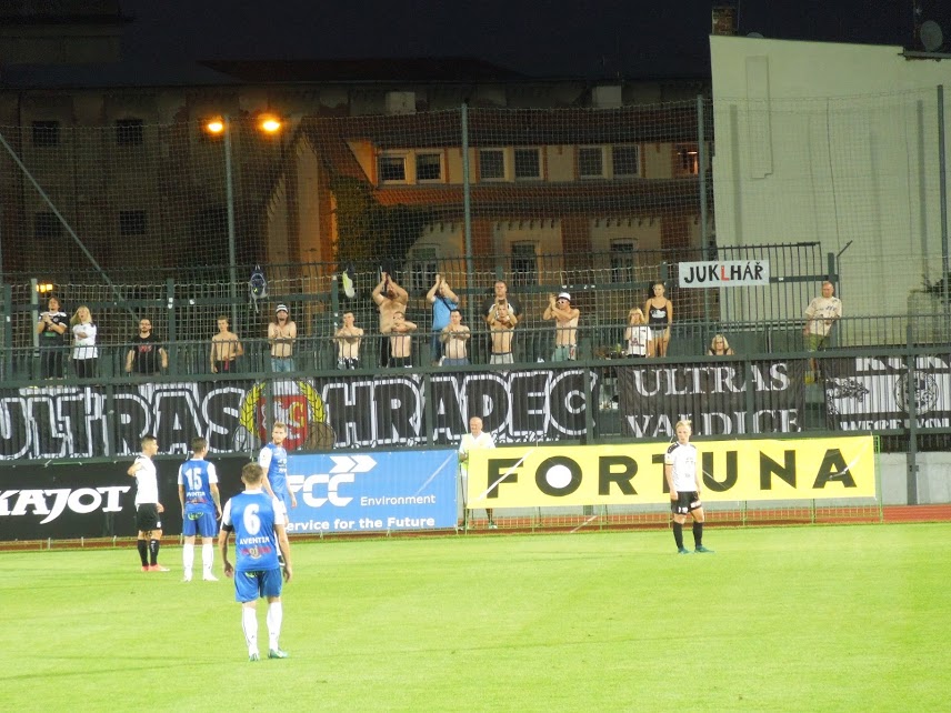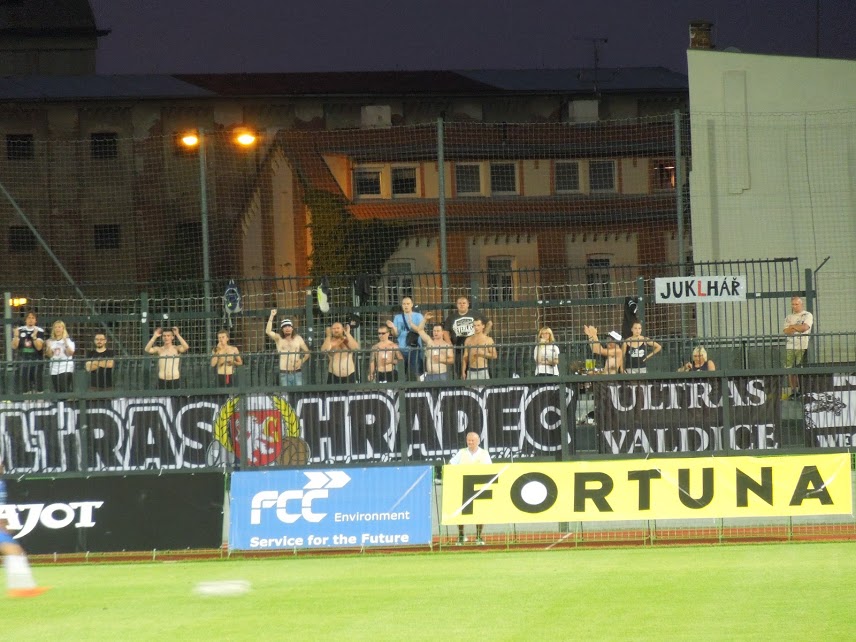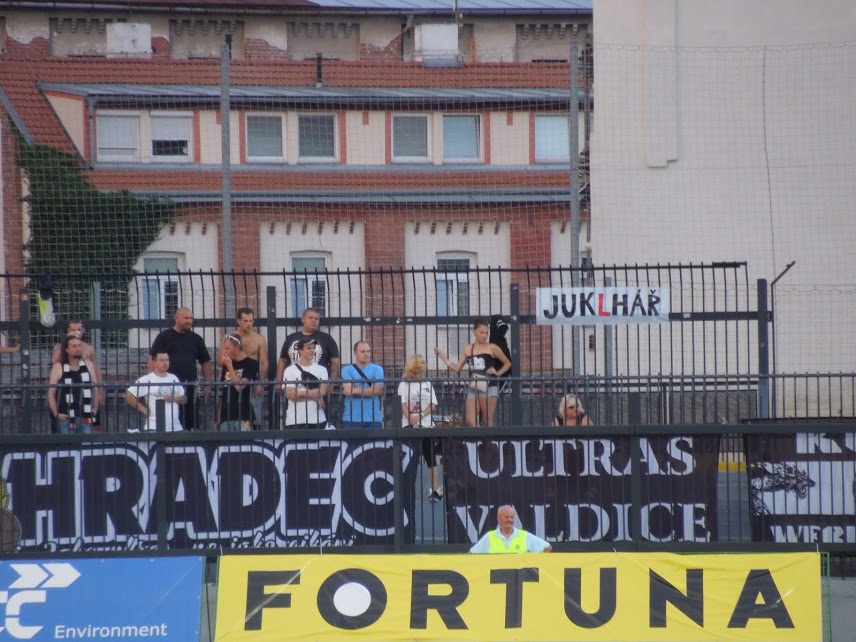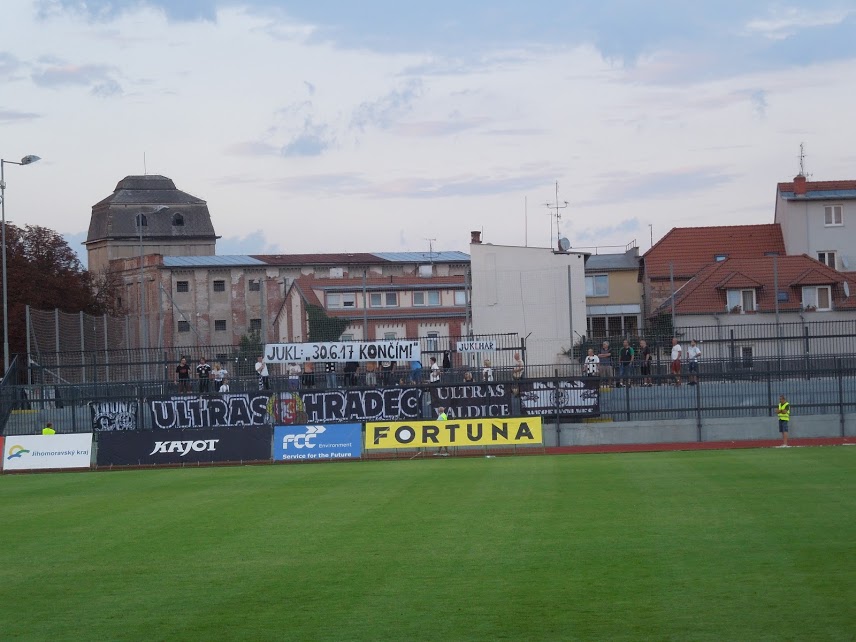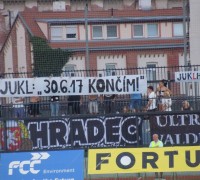 V sektoru se nás v páteční termín nakonec sešlo třiadvacet. Věšíme vlajky Kuks, Valdice, UH, YUHK + novou vlaječku JUKLHÁŘ. Ve 36. minutě se prezentujeme nápisy “JUKL: 30.6.17 KONČÍM!” a “VLK TAKY SLIBOVAL”, čímž poukazujeme na to, že pan Jukl je lhář. Nejprve prohlásil, že skončí ve své funkci, ale nakonec z toho záhadně vycouval. První poločas je fandění vlažnější i z důvodu zařizování občerstvení. Ve druhé půli fandění i díky brankám v soupeřově síti graduje, fandíme skutečně všichni a jdeme do půl těla. Po zápase přichází na řadu také vítězná děkovačka, kterou už jsme neměli strašně dlouho a byli jsme za ni neskutečně rádi.