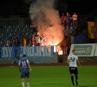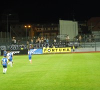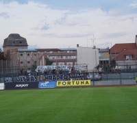 Domácí kotel byl na svém tradičním místě, připravil si plachtu s nápisem, ve druhém poločase byly k vidění i mávačky a pyrotechnika. První poločas fandili skvěle, druhou půli se jejich fandění trochu vytrácelo, důvodem byli zřejmě inkasované branky.
