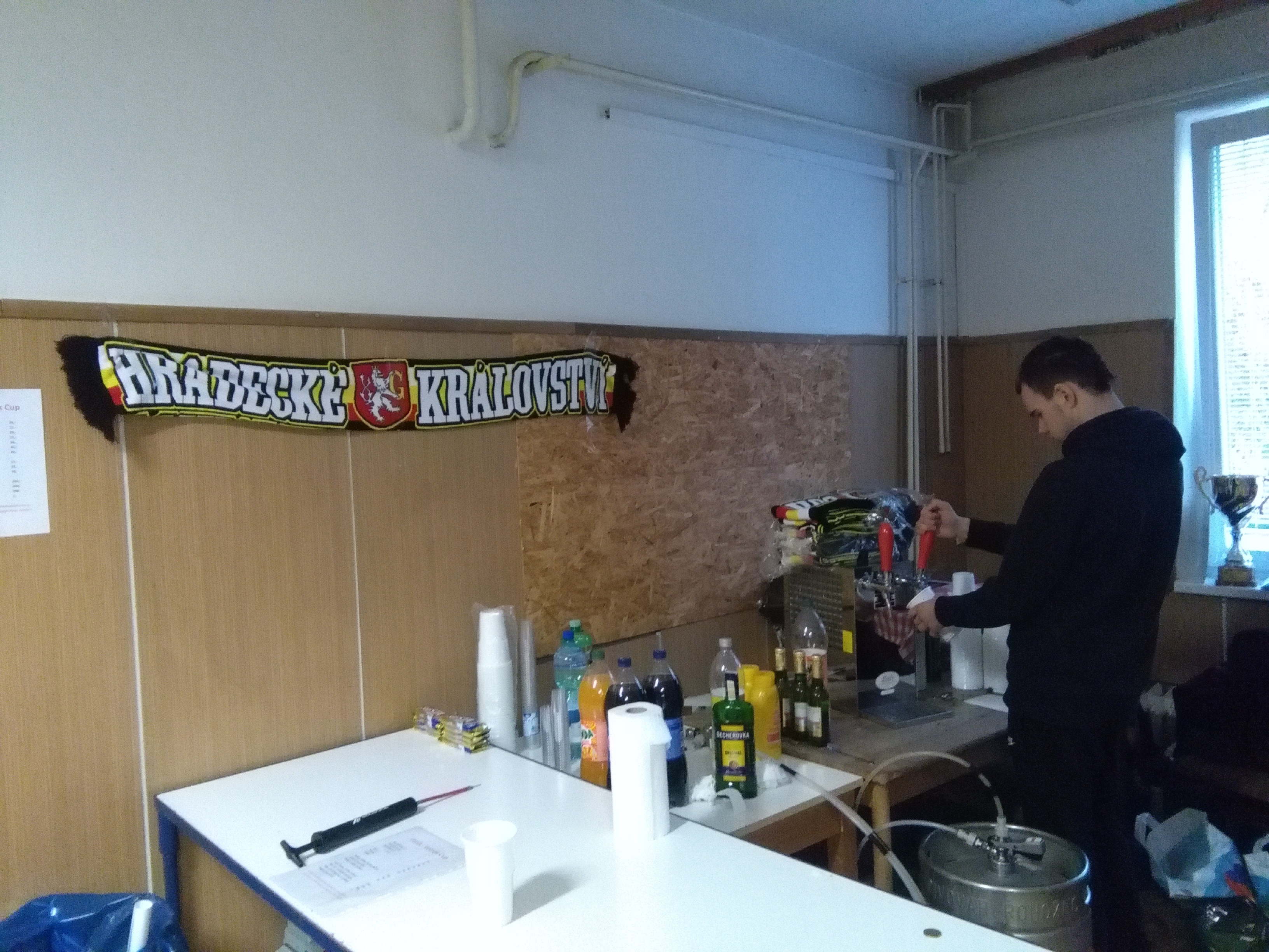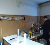 Zařídili jsme si také vlastní občerstvení. Krom dobrého piva a teplého jídla se prodávali také nové šály, zimní čepky a samolepky. Fanoušci se rozhodli, že pošlou 3000,- na transparentní účet kamarádovi, po kterém vedení klubu vymáhá okolo 70 tisíc za použití bezpečné pyrotechniky v zápase ve Zlíně. Pokud chcete fanouškovi pomoct, můžete mu poslat peníze na č.ú.: 2601383093/2010. Pomůže každá koruna, díky moc!