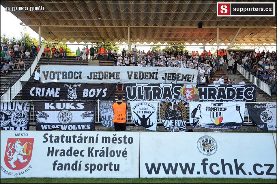 Největší podporu měli hradečtí fotbalisté hned na první výjezdu, kdy v pátek do Znojma vyrazilo 23 votroků. Naopak nejnižší počet byl zaznamenán v Opavě, též ve všední den, pouze čtyři fanoušci (zápas hrán v televizi). Průměrně vyjelo podpořit náš tým ani se mi to nechce psát… 10 hlav/zápas. O choreografii venku nemůže být ani řeč, vše je na bodu mrazu. Ve Znojmě a na Strahově pouze posíláme vzkaz vedení (Michálek, Šedivý, Jukl).