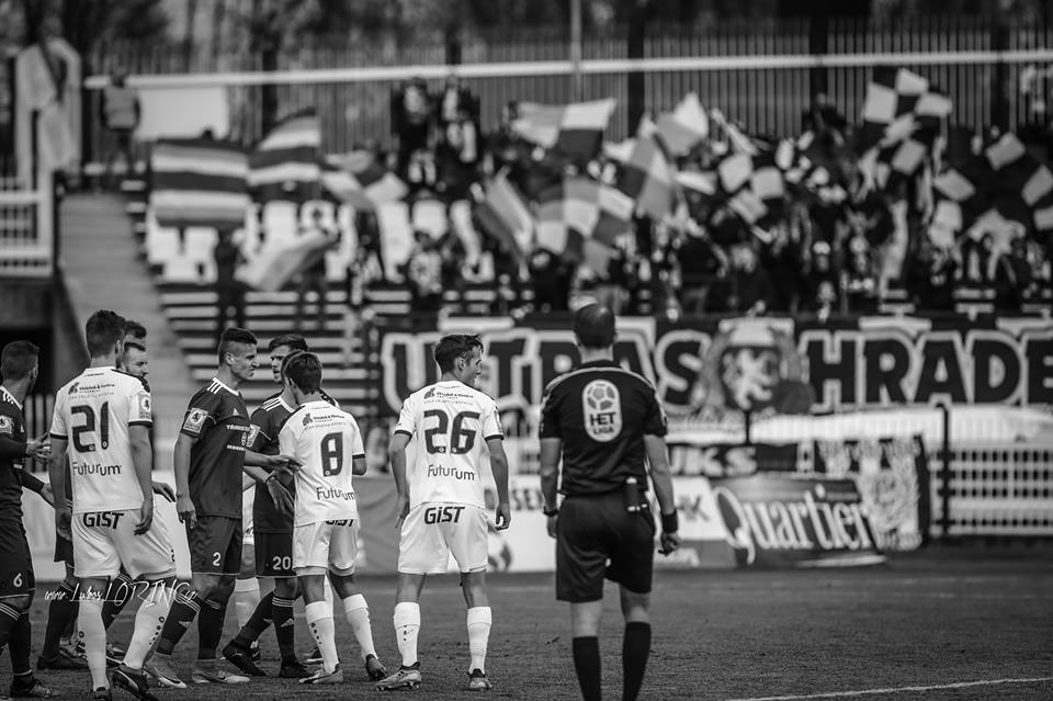 Fandění tentokrát nebylo vůbec dle našich představ. Oproti derby to bylo nebe a dudy. Ve 30. minutě se prezentujeme nápisem “Hradečáci” a mávacími vlajkami. Ve druhém poločase nás nakoply vstřelené branky a také neutichající chorál “Černobílá síla nazývaná Votroci”. Ti kteří měli zájem fandit si zápas užili, ale samozřejmě čím více lidí chce fandit, tím je výsledek lepší.