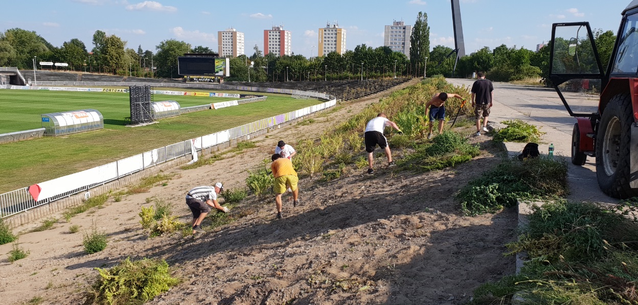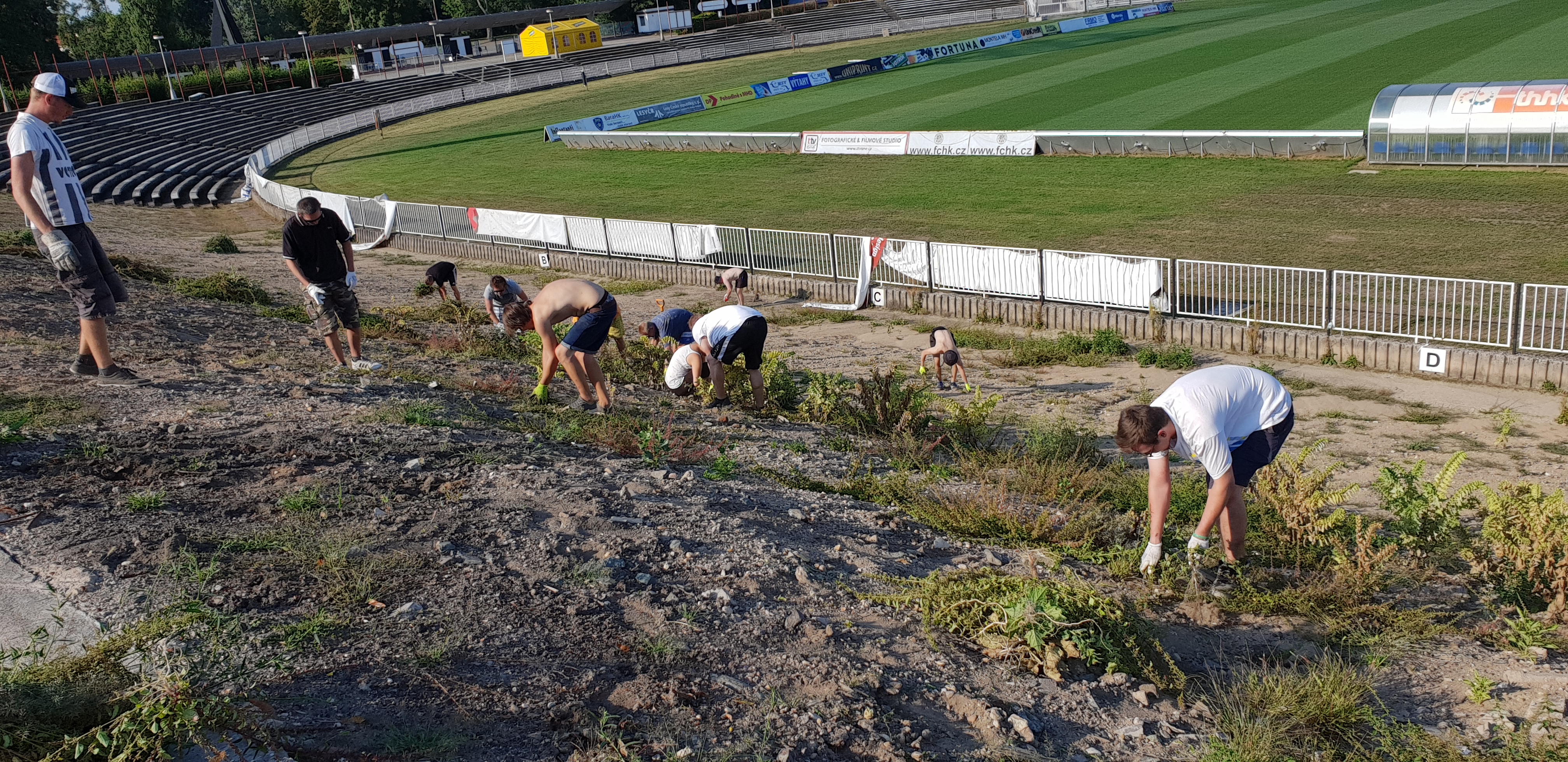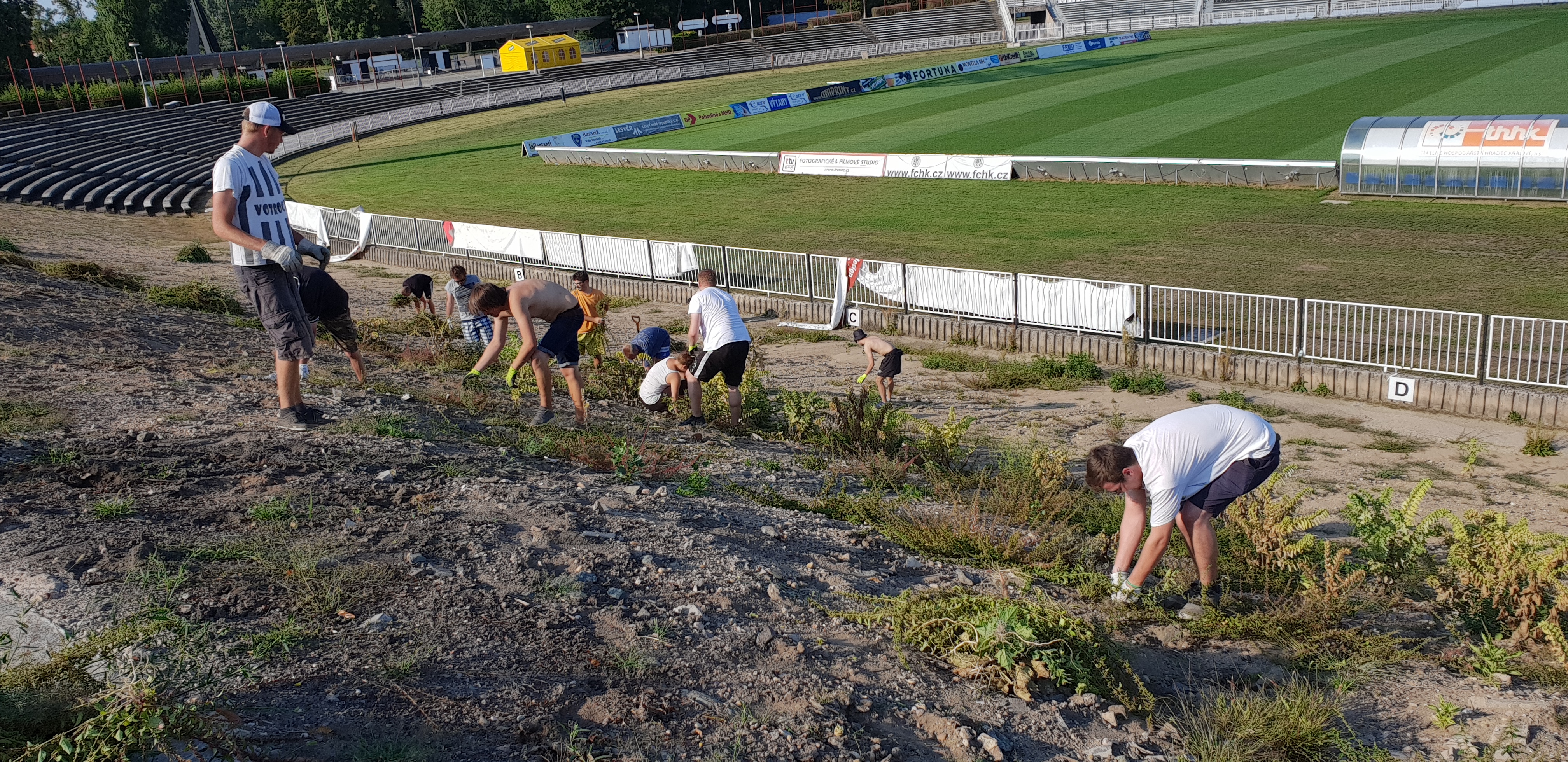 Akce se dobrovolně zúčastnilo 14 fanoušků, ať už z fanklubu VOTROCI 2000 nebo skupiny Ultras Hradec. Do akce se zapojil i vedoucí stadionu Milan Ptáček, který donesl navíc nářadí a rukavice. Na dobrovolné události pomáhal také Michal Petrák, který navíc zařídil občerstvení, které fanoušci ve velkém teple ocenili.