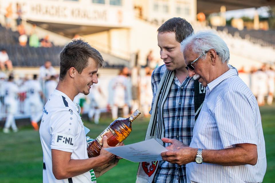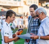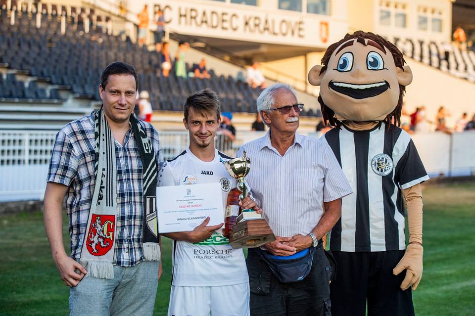 Na hřišti byl ještě z rukou předsedy fanklubu Ing. Jana Sedunky a člena fanklubu Zdeňka Zvolánka předán Adamu Vlkanovovi putovní pohár pro nejužitečnějšího hráče za loňsko sezónu a také flaška něčeho ostřejšího. Adame, gratulujeme!