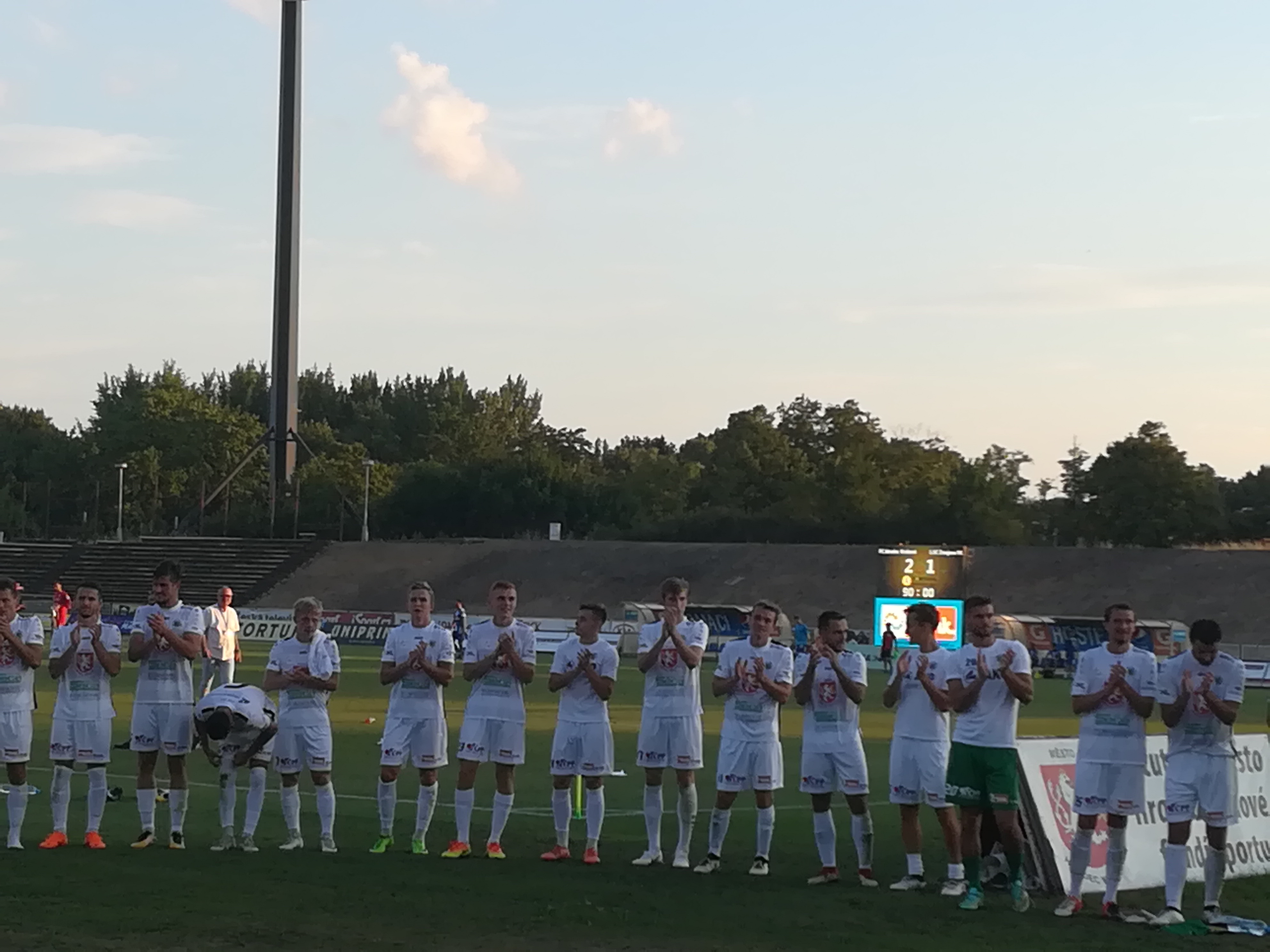 Po zápase probíhá z důvodu tepla a našeho nízkého počtu pouze kratší děkovačka “Hradecký útok”.