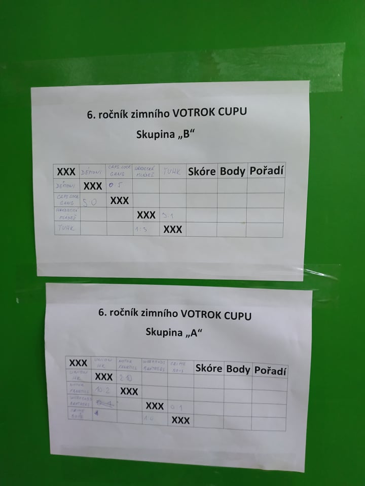 V sobotu 5.1. 2019 se uskutečnil již 6. ročník zimního halového turnaje Votrok Cup. Stejně jako v ročníku předešlém, tak i v tom šestém jsme turnaj připravili až po novém roce, aby se shodilo nějaké to kilo z vánočního cukroví a bramborového salátu. Turnaj byl opět stejně jako loni pouze pro osm týmů, což je pro nás ideální počet, vzhledem k tomu, že má hala, ve které se turnaj pořádá pouze jedno hřiště.