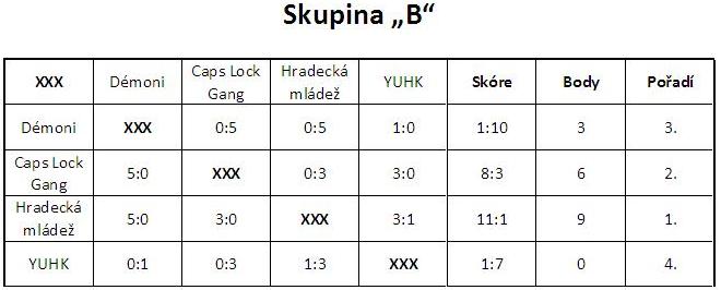 Turnaje se tentokrát nezúčastnily týmy Black Storm a Veteráni, avšak tři fanoušci z nich hodně pomohli s organizací turnaje, ať už Jarin s dcerou Mončou u občerstvení, tak i Švéd a Koty v roli rozhodčích.