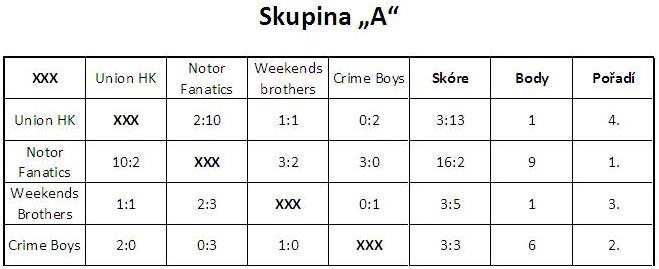 Vítězem turnaje se stal podruhé v historii tým zlobivců z Crime Boys, kteří sice s mančaftem Notor Fanatics prohráli ve skupině, ale ve finále jim to vrátili i s úroky a zvedli nad hlavu trofej pro vítěze.