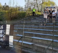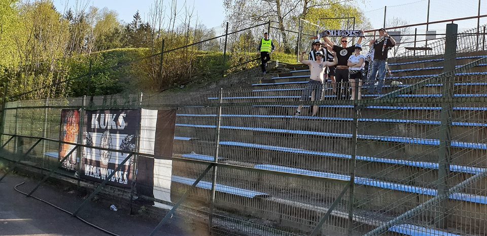 Ve druhé půli se k nám přidávají ještě dva fanoušci, kteří byli první poločas na hlavní tribuně a náš výjezdový počet tedy čítal devět fanoušků.