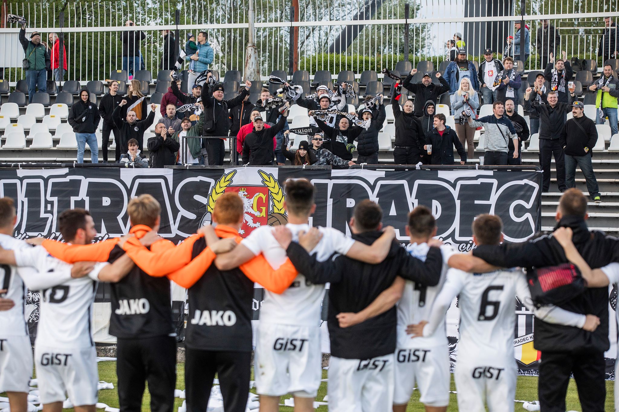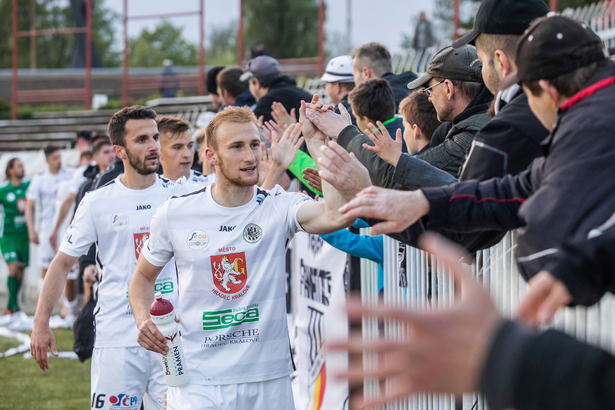 Hradečtí fotbalisté ve 26. kole přivítali na svém stadionu v Malšovicích dosud na jaře neporažené České Budějovice. První tým FORTUNA:NÁRODNÍ LIGY mohl v tomto kole navíc slavit postup do FORTUNA LIGY. Stačilo jim, aby získali ve 26. kole více bodů než Jihlava. Budějovičtí nezískali ani jeden bod. Hradec je na svém stadionu porazil díky gólu Filipa Zorvana 1:0.