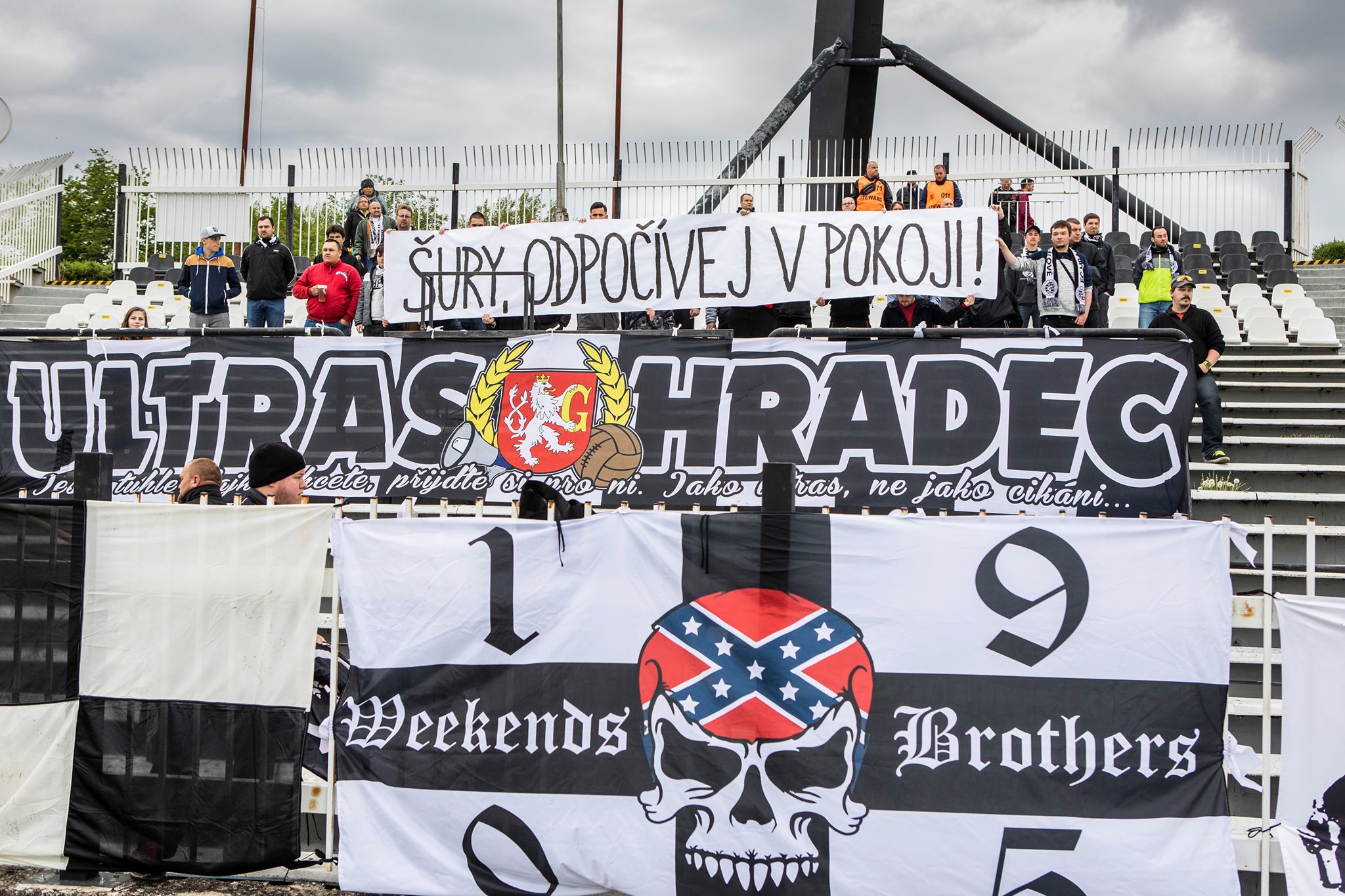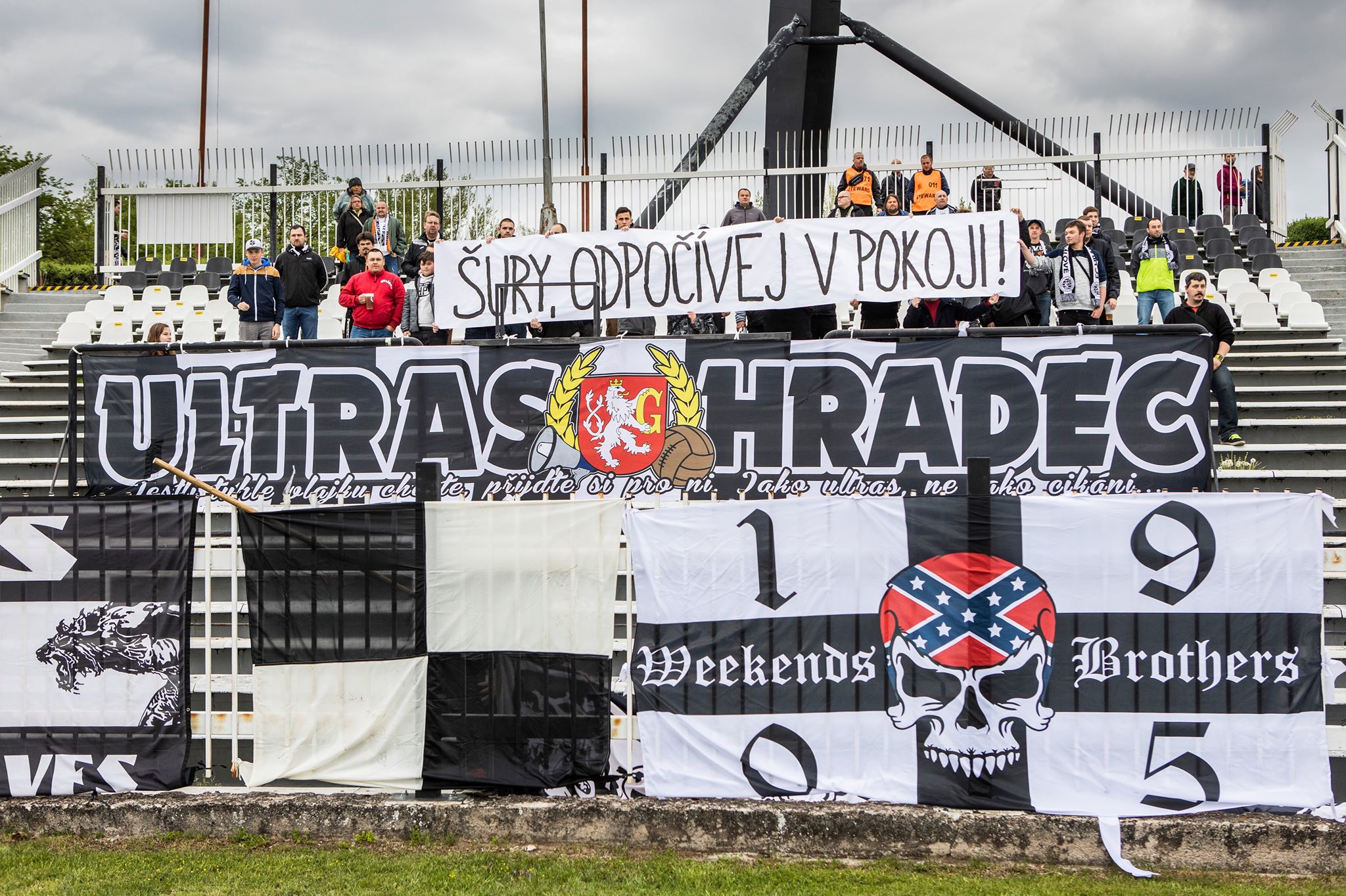 V čele sektoru visela vlajka Ultras Hradec a na předním plotě několik menších zástav. V úvodu utkání vytahujeme při minutě ticha nápis “Šury, odpočívej v pokoji” pro tragicky zesnulého fotbalistu Josefa Šurala. Nápis měl být doplněn o červené světlice symbolizující svíčky, nicméně byly zakázány.