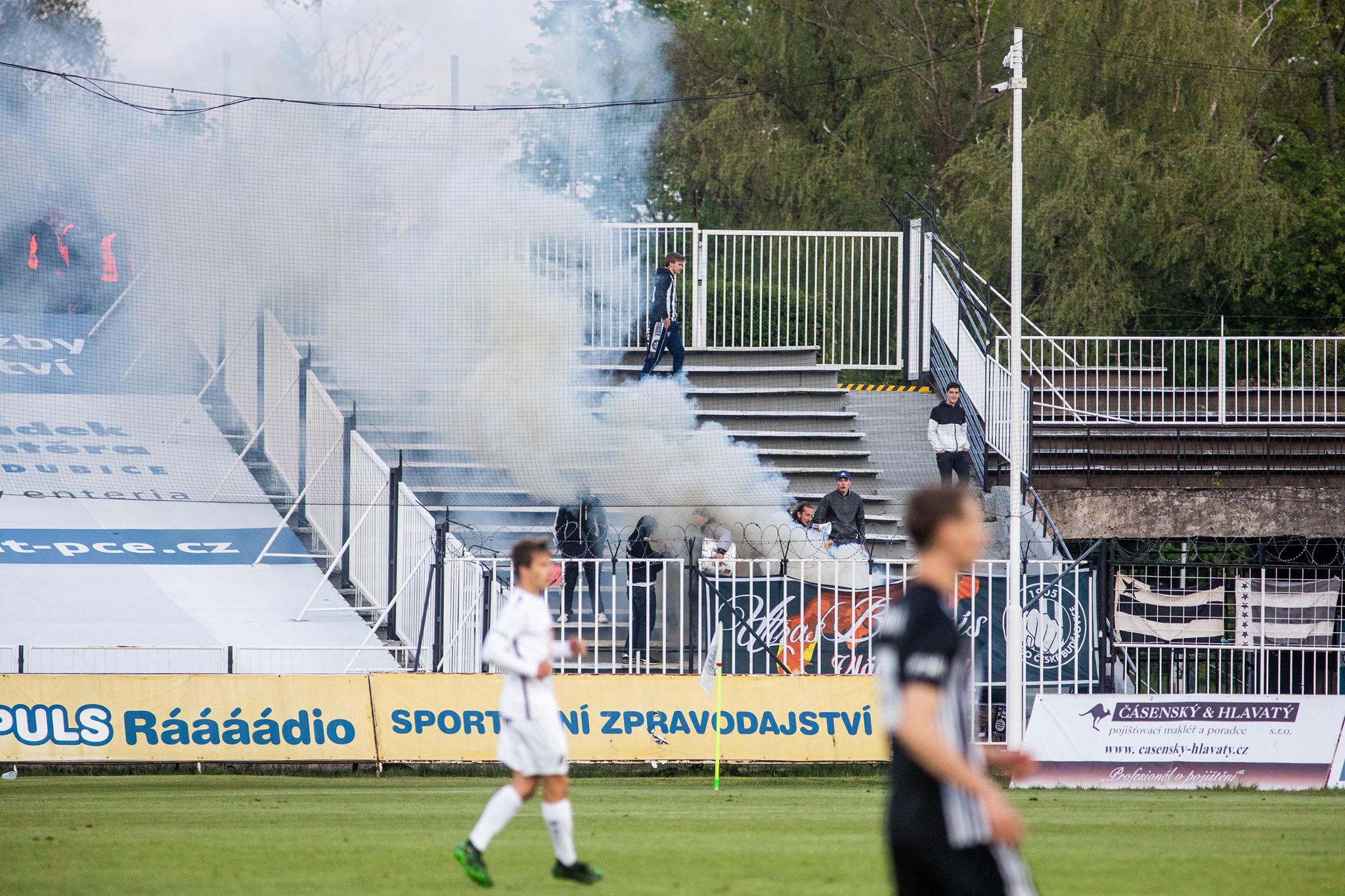 Většina se baví fanděním po svém, “zdravíme” i fanoušky z jihu Čech, kteří nás překvapili a k údivu všech dorazili do královského města. Přesný počet nevíme, ale měli pár zástav na plotě, kvalitní bílé dýmovnice a jejich support byl organizovaný.
