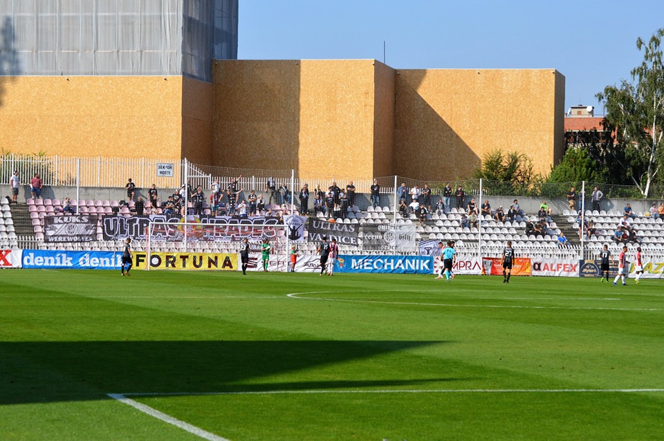 Do nové sezóny s jednou velkou změnou, sektor domácích se díky nainstalované montované tribuně přesunul za branku, výhodou je především, že jsme blíže ke hřišti, to jsme si všichni přáli. Montované tribunky jsou za brankou celkem dvě, druhou využívají ostatní fanoušci, tu které je blíž západnímu valu, tu okupují aktivnější fanoušci. Aktivní jsme během podzimních zápasů příliš nebyli, naše počty se opět pohybovali okolo 20- 30 fans. Na derby s Pardubicemi nás bylo zhruba osmdesát, možná víc.