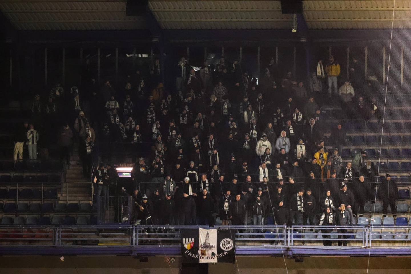 Nekonal se organizovaný výjezd, takže si každý podle svého vybral, jak se na zápas dopraví. V sektoru hostů se před výkopem utkání schází celkem slušných 165 výjezdníků. Naše podpora byla bez jakékoliv optické prezentace, jen snad s jedinou vlajkou. Fandění od začátku bylo na velmi vysoké úrovni a chvílemi to mělo (holky prominou) opravdu koule.